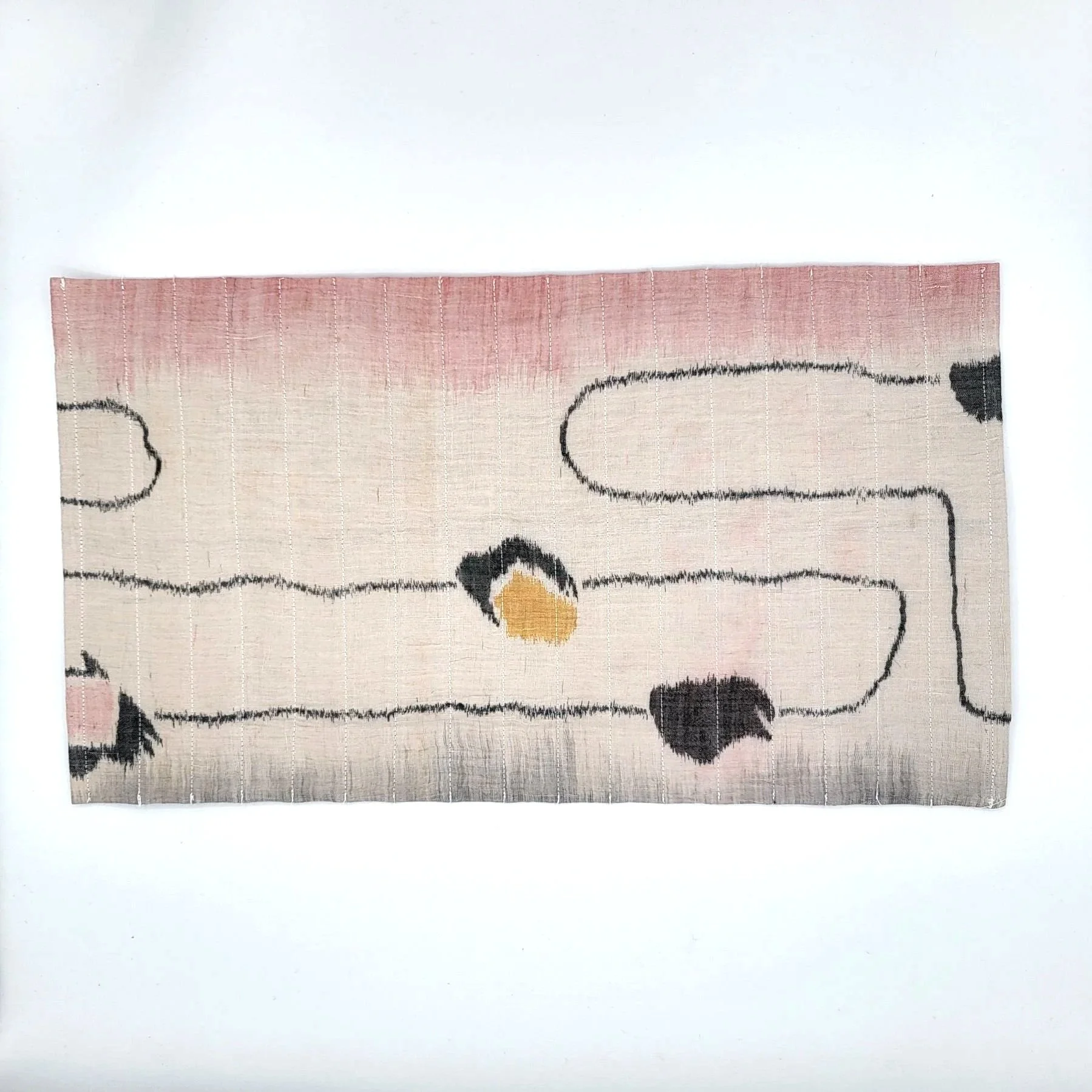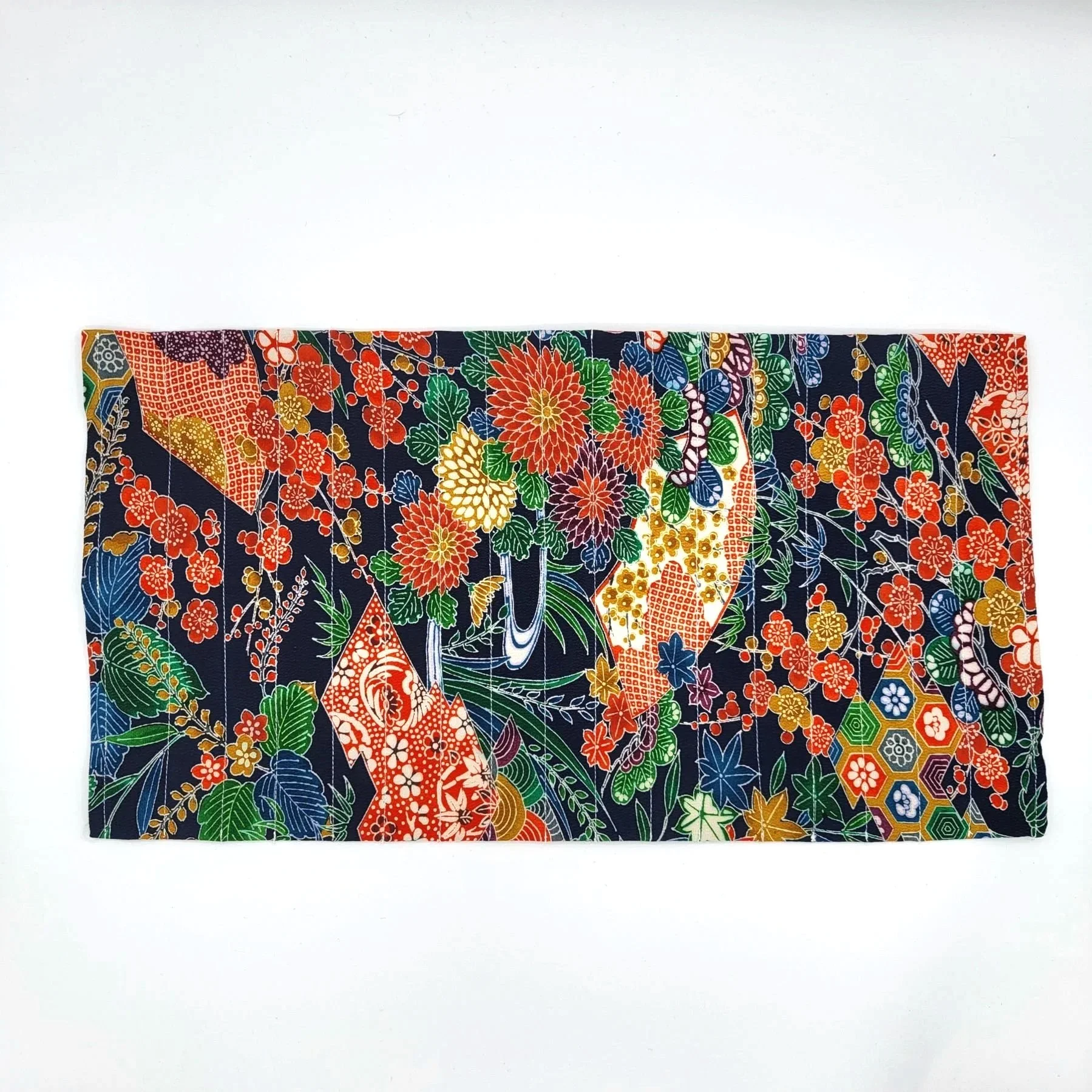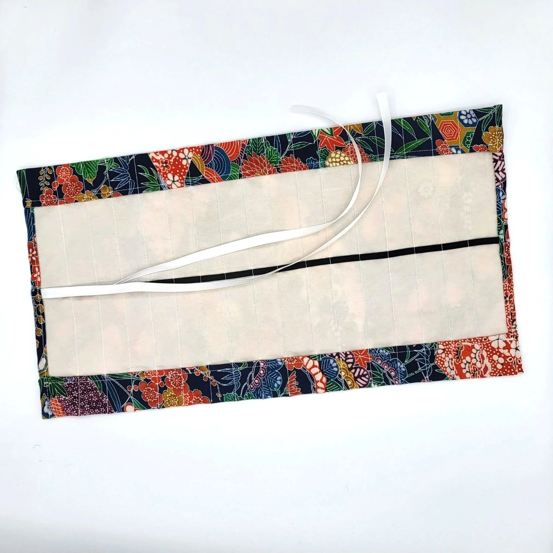 This expandable fabric pouch is sewn from upcycled and repurposed textiles and features accordion-style pockets for organized storage. The ribbon-and-button closure adjusts to accommodate a variety of items, from double-pointed knitting needles to small tools and accessories. Measuring 8.5 x 7.5 x 1 inches, it offers a compact, flexible way to keep essentials neatly arranged. Spot clean with a wet cloth.